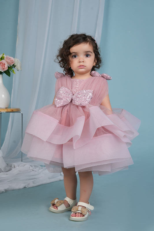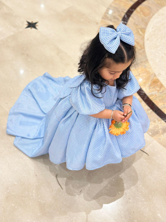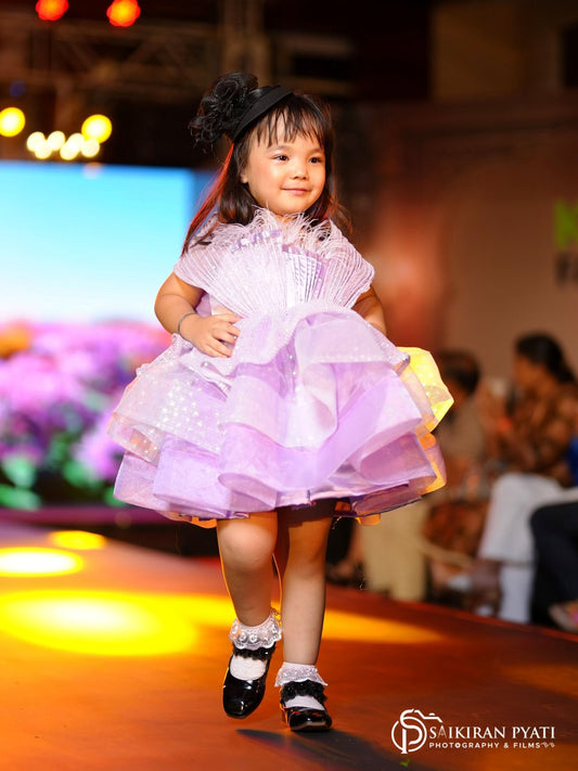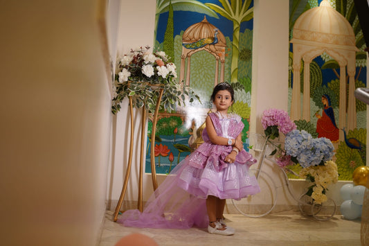 Multi-Layered Dress for girls with wire detailing & detachable trail
